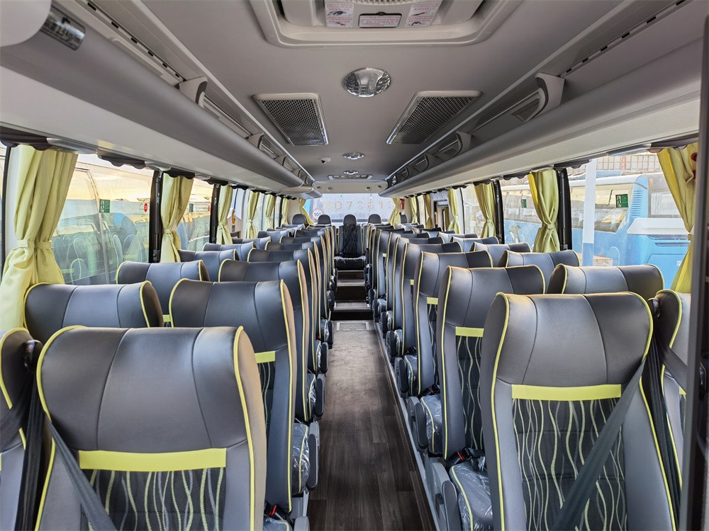 首先,車輛發(fā)動機艙配備了最新的自動滅火裝置,安全帶配置了未系警示功能,除了前后門外,應急出口數(shù)量增加至7個,車輛還新增了駕駛員一鍵破窗、一鍵滅火和駕駛員安全護欄等多項車內安全設施。其次,坐間距離的加大,使駕乘空間更加人性化;選用透氣性更好的織物和皮革相結合的座椅,使旅客乘坐舒適度得到了提升;全車采用自動換風系統(tǒng),有效改善車廂空氣質量。此外,車輛采用最新的國六發(fā)動機,尾氣排放低、靜音效果好。據悉,該批車輛將用于通勤和旅游業(yè)務。